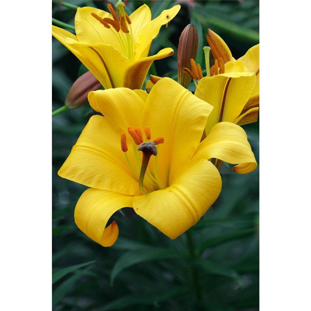 Lilie 'Yellow Planet' (Lilium 'Yellow Planet') vnese do vaší zahrady skutečnou sluneční energii. Její čistě žluté květy s elegantně srolovanými okvětními lístky září jako malá slunce. Květy zdobí výrazné rezavě oranžové tyčinky. Dokonale kontrastují s jasnou žlutou barvou. Na robustních stoncích, které mohou dorůstat výšky až 120 cm, se tyto nádherné květy vypínají nad okolní rostliny.