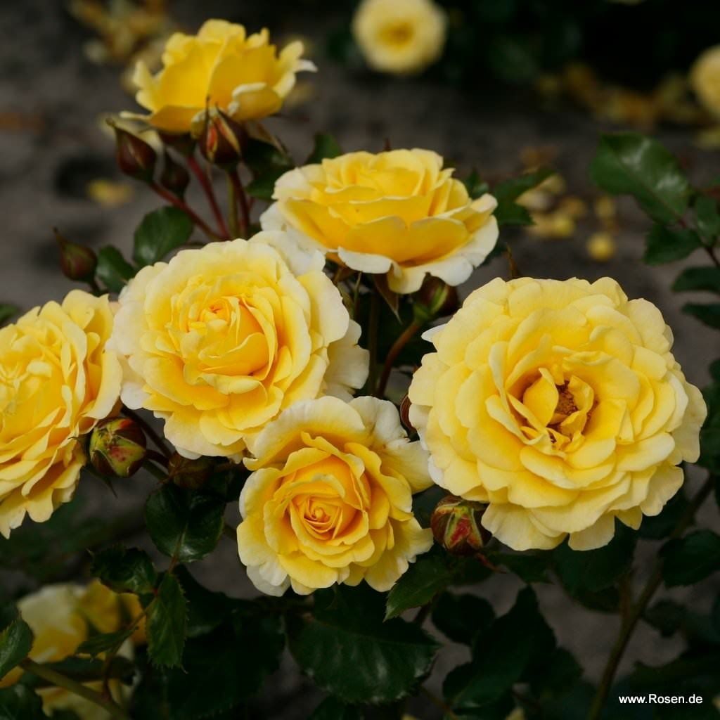 Mnohokvětá růže Kordes 'Sunmaid®' (Rosa 'Sunmaid®') vdechne vašim záhonům doslova sluneční energii. Její výrazně žluté květy o velikosti 6 cm vynikají na pozadí tmavě zelených, zdravých listů jako malá slunce, která rozzáří každý kout zahrady. 'Sunmaid®' není jen ledajaká růže. Za svou krásu, zdraví i snadnost pěstování získala prestižní ocenění ADR. S výškou 70 cm a šířkou 50 cm vytváří zářivé ostrůvky květů ve smíšených záhonech, ale sluší ji to i v nádobě na terase. Potěší vás jemnou vůní.