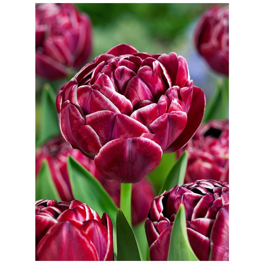 Tulipán (Tulipa) 'Dream Touch' je fascinující odrůda, která okouzlí svými velkými, plnými květy v nádherných odstínech tmavě fialové až bordó s jemným bílým lemováním. Tento tulipán dorůstá do výšky 45-50 cm a kvete od dubna do května, čímž přináší do jarních zahrad eleganci a výrazný barevný akcent. Květy tulipánu 'Dream Touch' mají silné stonky a dlouhou výdrž, díky čemuž jsou ideální i pro řezání a vytváření luxusních květinových aranžmá.