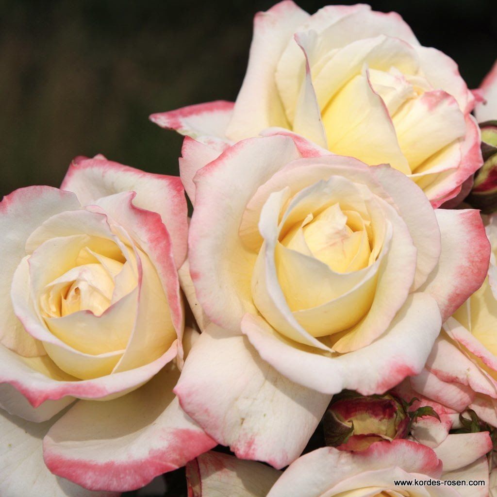 Velkokvětá růže 'Athena' (Rosa hybrida 'Athena') nese jméno mocné řecké bohyně a stejně jako ona v sobě spojuje sílu s elegancí. Její velkolepé květy totiž dosahují průměru až 11 cm a hrdě nesou jedinečnou kombinaci barev: smetanově žluté okvětní lístky lemuje na okrajích růžová kresba. Každý květ se nese na až 120 cm vysokých výhonech a šíří kolem sebe příjemnou vůni. Velkokvětá růže 'Athena' vytváří až 60 cm široký a bujný keř plný nádherných květů, který se stane dominantou vaší zahrady. Skvěle se hodí také k řezu do vázy a do květinových aranžmá.